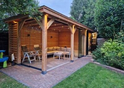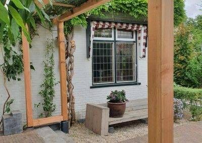 Een overkapping of pergola in de tuin voegt zowel plezier als functionaliteit toe. Het biedt een schaduwrijke oase waar je kunt ontspannen en genieten van het buitenleven, zelfs op zonnige dagen.